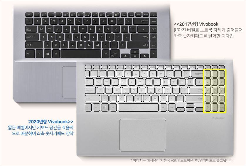 노트북에서는 보기힘들었던 데스크탑 키보드용 숫자판이 설계되어 있어서 익숙하게 사용할 수 있고, 키보드의 각도를 2도 올려 사용자의 편안함을 더했습니다.