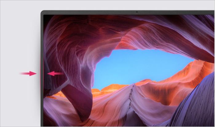 에이수스 비보북 15 R564DA은 좌우베젤을 최대한 줄이고 화면을 키워 디스플레이의 화각을 넓혔습니다. 14인치 크기로 15.6인치의 화면을 구현하는 실용성있는 노트북입니다.